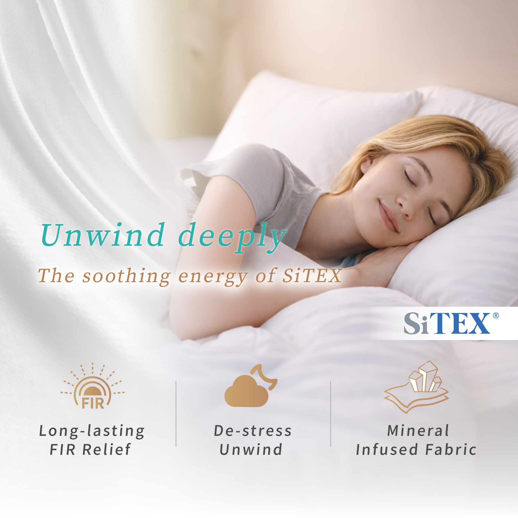 1. SiTEX FIR Yarn – Our U.S.-patented, mineral-infused yarn emits far infrared energy to support circulation, thermoregulation, and antibacterial function.