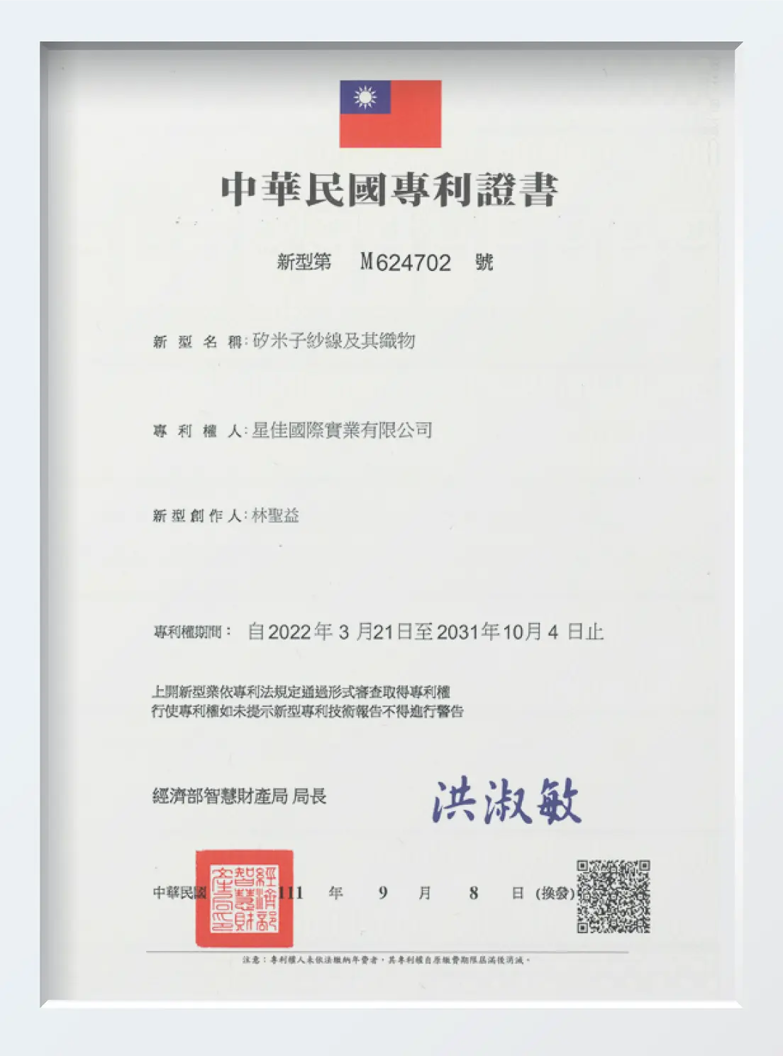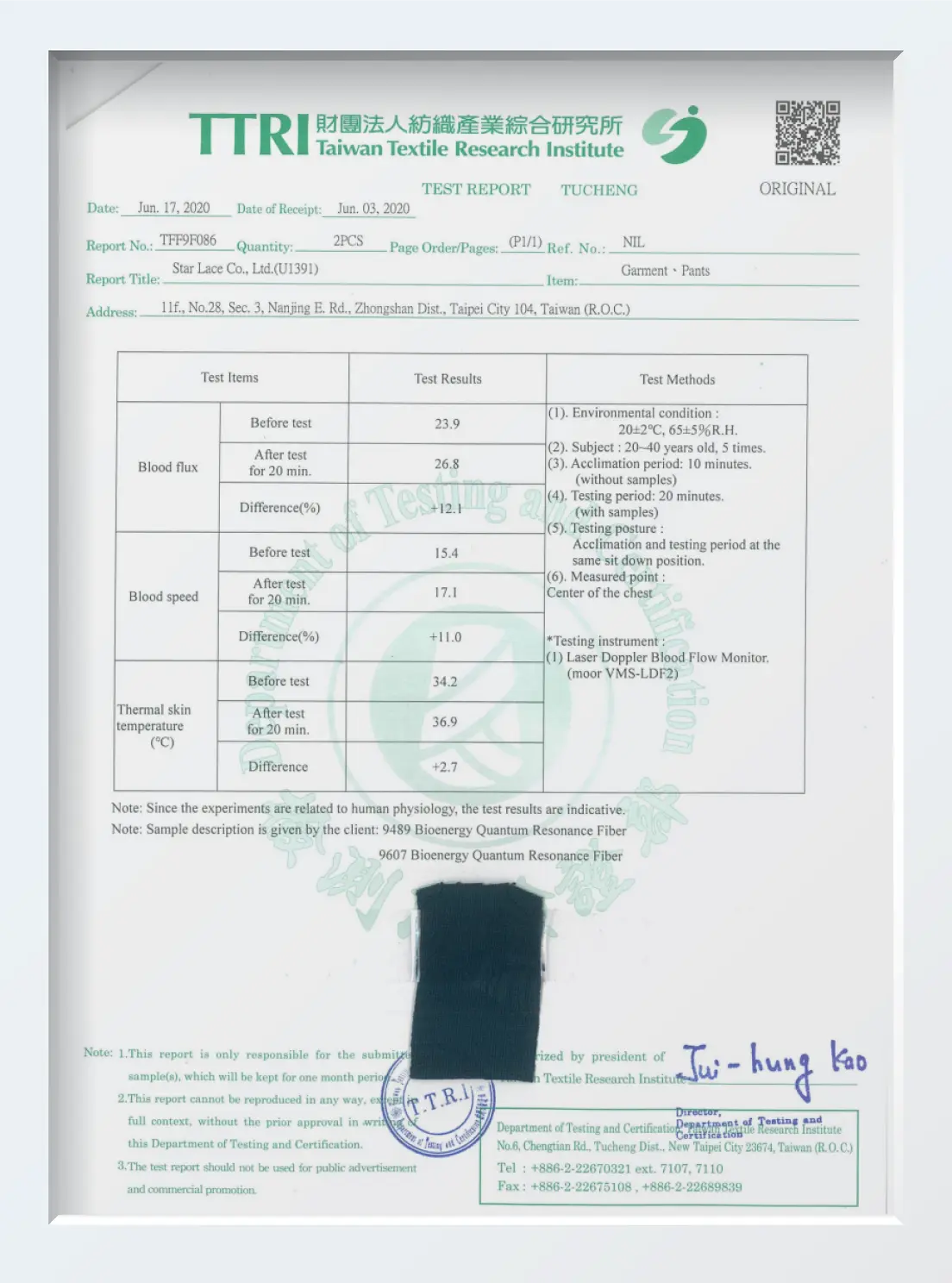 SiTEX FIR Yarn is our U.S. and Taiwan patented, mineral-infused functional yarn that naturally emits far infrared energy to support circulation, thermoregulation, and antibacterial performance. Its effectiveness is validated by third-party lab testing, including: